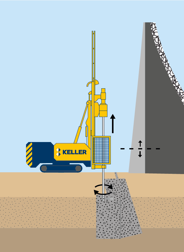 Je nach Aufgabenstellung müssen die Arbeiten z. B. von der Dammkrone ausgeführt werden. Dies erfordert im Regelfall eine Anpassung der Gerätetechnik an die Erfordernisse und Genauigkeit der Bohrungen.