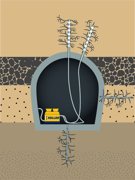 Vielfach müssen die Bohr- und Injektionsarbeiten aus kleinen Kontrollstollen ausgeführt werden. Hierzu sind häufig individuelle Geräteanpassungen, die mit der hauseigenen Maschinentechnik umgesetzt werden können, notwendig.